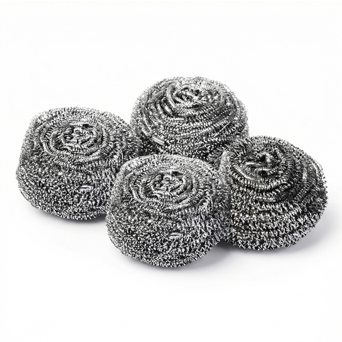 Pack de 4 virutillas metálicas para ollas y utensilios, ideal para restaurantes, casinos y empresas de alimentación.
